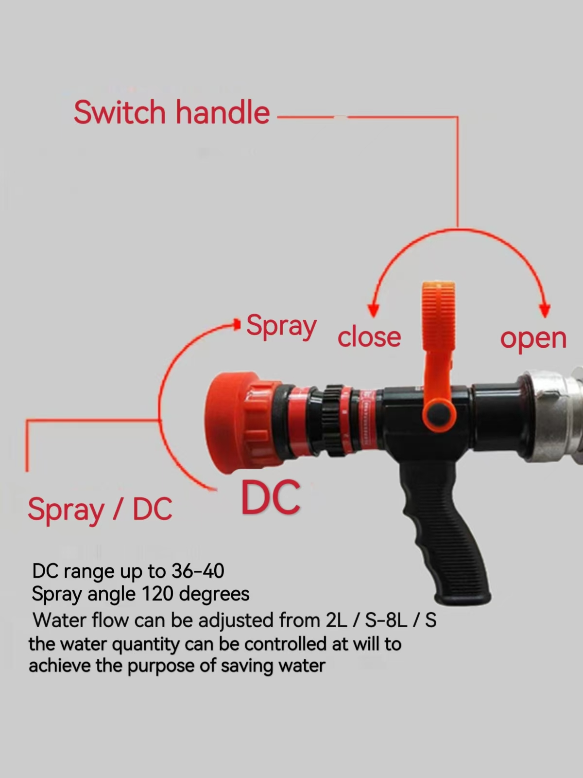 1.Automatic adjusted pressure of fire nozzle do no need to switch flow rate , maximum reduce the recoil force , can outstanding improve the security of fire nozzle .Slide valve can maximum reduce the turbulent flow especially on the roof , slope and other environment . Recoil force is very dangerous in the fire , use this type fire nozzle can avoid this dangerous.